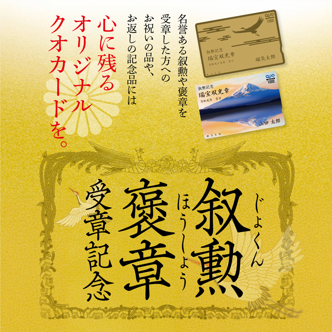栄えあるご受勲を祝し お世話になった方へ 思いをカタチにして【オリジナルQUOカード】を 贈りませんか。