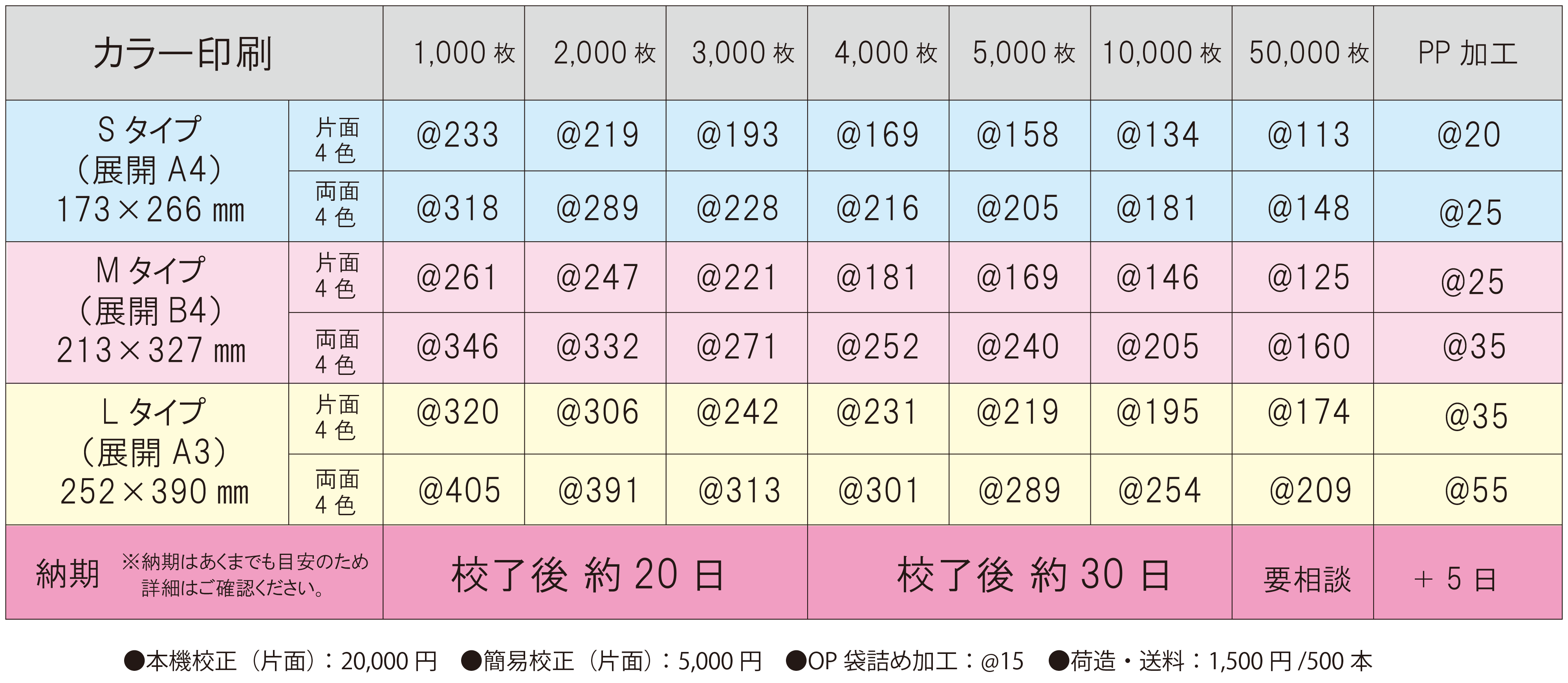 表示価格は完全データー入稿で、1本の価格(税別)となります。●デザイン制作が必要な場合、別途費用がかかります。